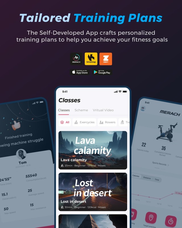 • APP Tailored Training Plans: Elevate your fitness journey with our extensive range of complimentary exercise classes and personalized workout programs. Our app seamlessly integrates HIIT methods, making it easy for you to track your progress with real-time metrics such as distance, time, calories, average BPM, and more. Experience optimization at its best, and enjoy compatibility with KINOMAP and Zwift APP for a holistic fitness experience.