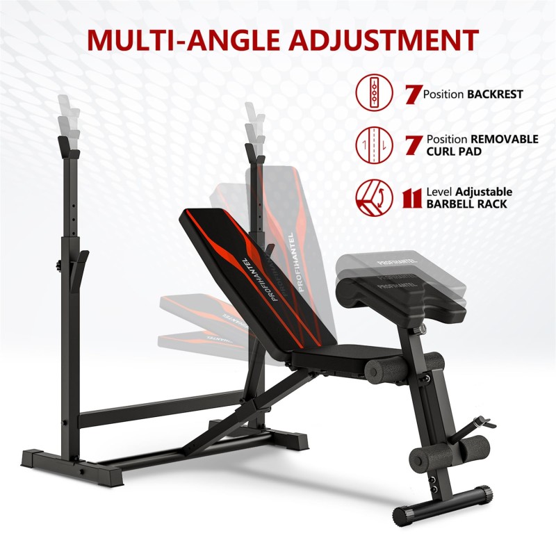 Profihantel Adjustable Weight Bench, Bench Press Rack with Squat Rack, Leg Exercises Preacher Curl Rack for Home Gym Full Body Workout