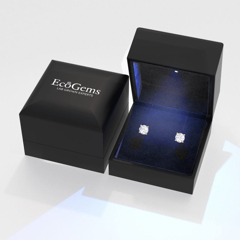 • Shine bright with Eco Gems' Round Brilliant cut Lab Grown Diamond Stud Earrings for Women. With 3.0 cttw and 14K gold, these earrings will make you look and feel fabulous. Secure 4 prong push backs for added peace of mind. Perfect for any occasion. Our 14K solid gold jewelry is lead-free and non-irritating, even for sensitive skin. Our jewelry retains its color and luster, ensuring long-lasting wear