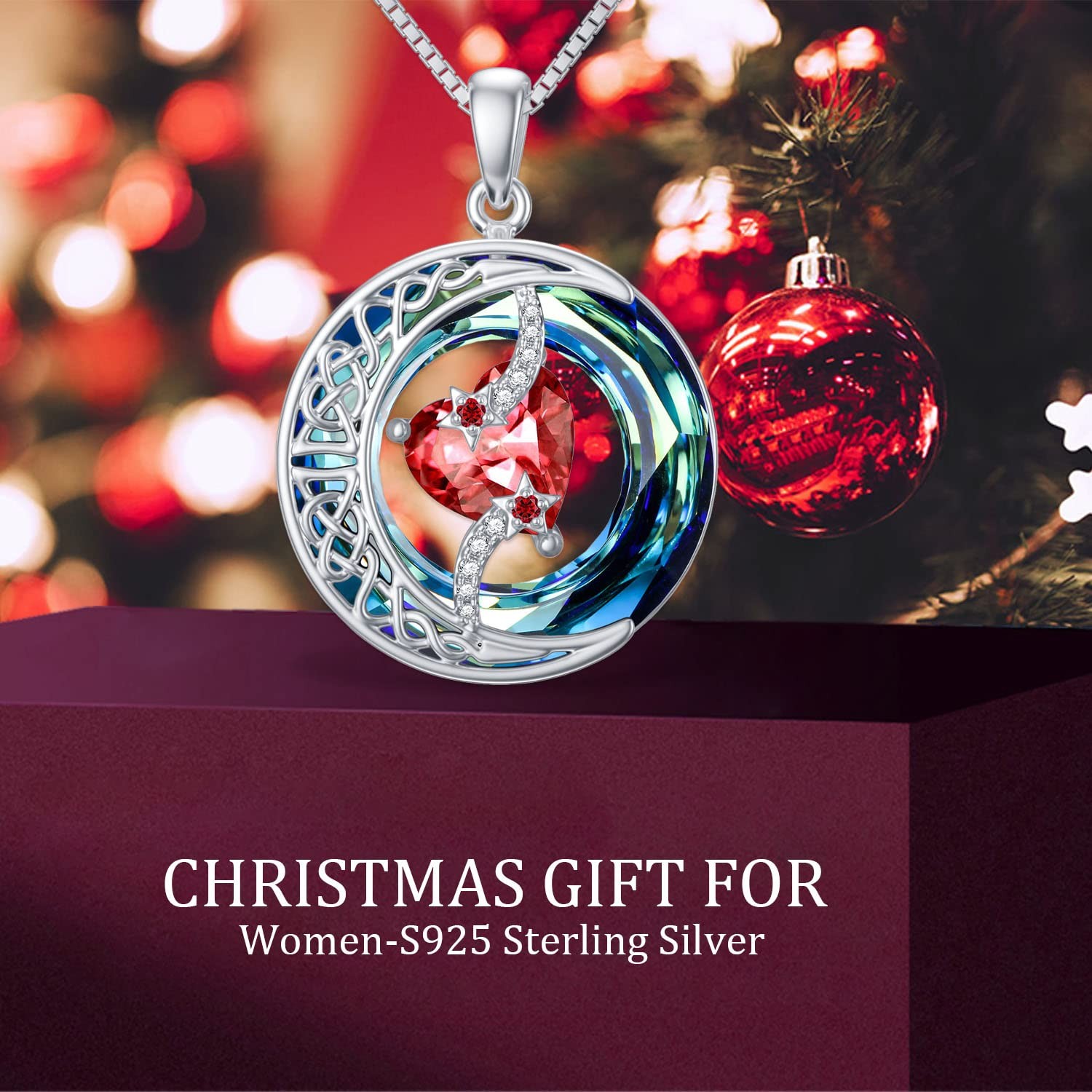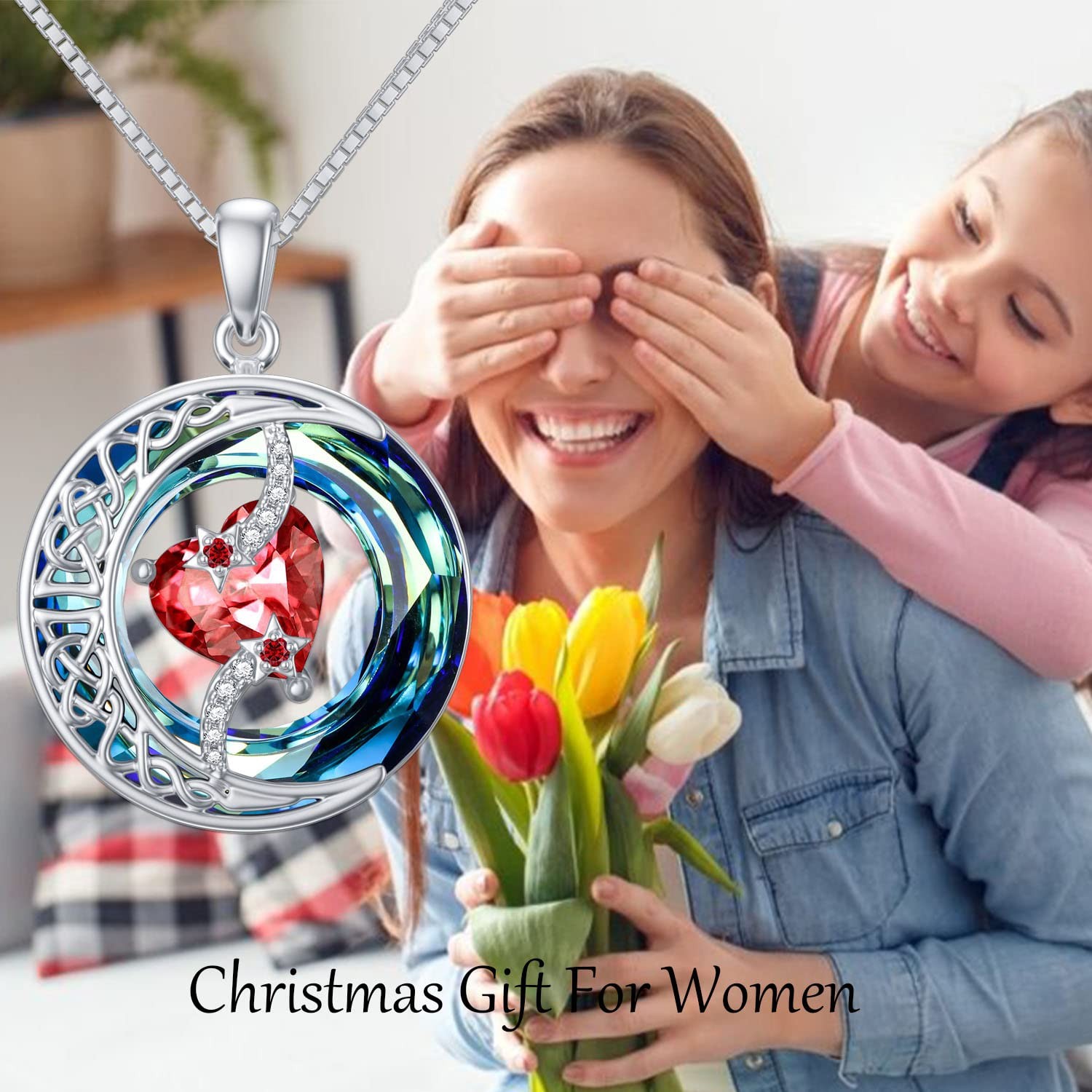 TOUPOP Christmas Gifts for Women Moon Star Necklace Necklace for Women Heart Birthstone Pendant S925 Sterling Silver Jewelry